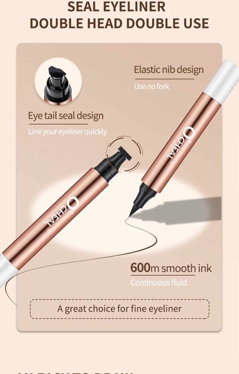 O'CHEAL Eyeliner Stamp Black Liquid Eyeliner Pen Waterproof Fast Dry Dual Head Eye Liner Pencil Make-up for Women Cosmetics Tool